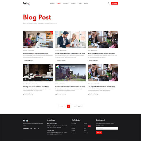 Folio theme is based on the latest Bootstrap 5, the most popular CSS framework for developing responsive and mobile-first websites. Folio offers incredibly beautiful layouts and on all major browsers, devices and operating systems.