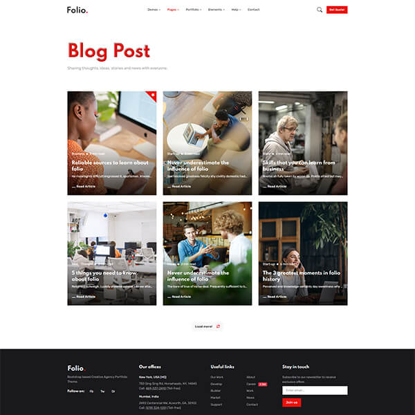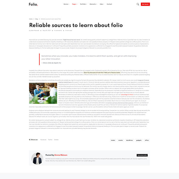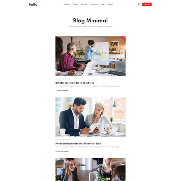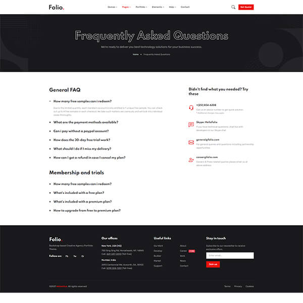You will get exceptionally detailed documentation with Folio. We believe – we have covered every essential information for getting your site up and running, that you’ll be in a good position to start customizing your theme. And always, if in case, you don't get what you are looking for in docs, our support team is always with you to answer your queries.