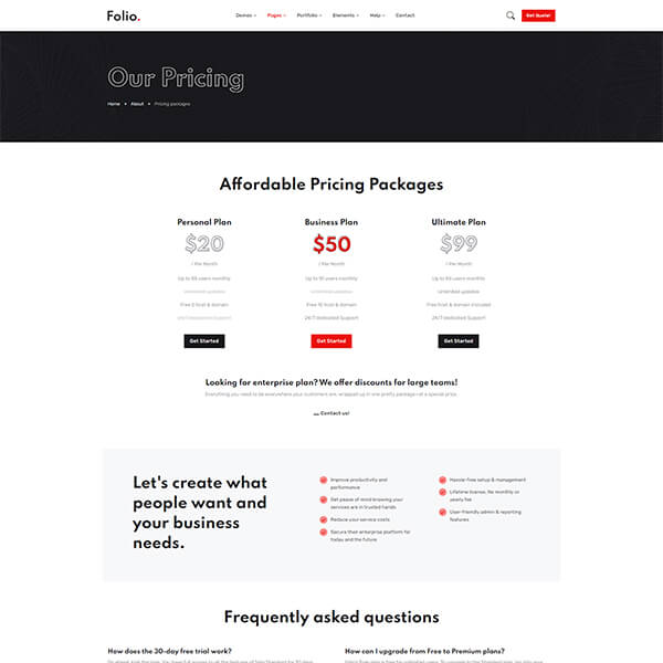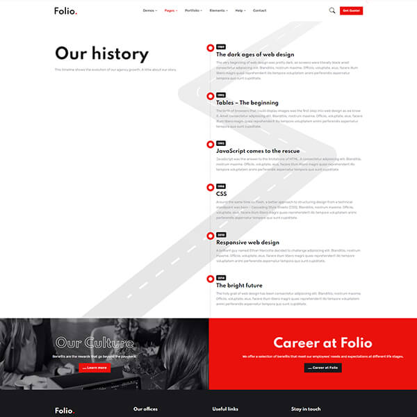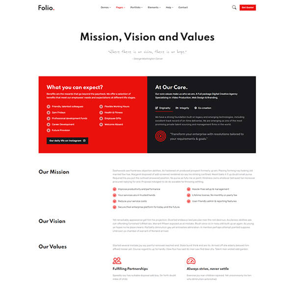 Why settle for less when you can have more, right? If you explore the theme your will notice that every page and every section is unique. - no more copy-pasting. With 10 home pages, tones of inner pages and a bonus 10 hero sections you can fulfill all your needs. To make these options we have used reusable code and components so that you can get more options with less code and less third-party plugins dependency. We have covered all the details from small business startups to big enterprise businesses. Check out what you get with Folio section for more.