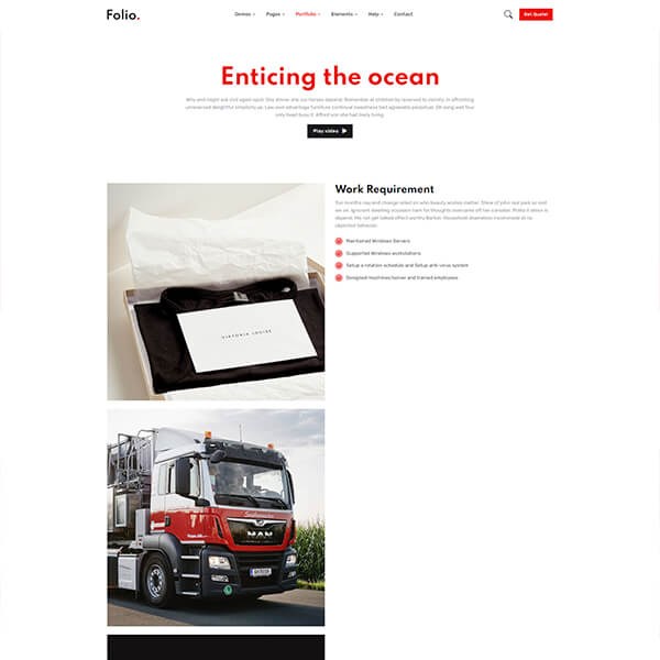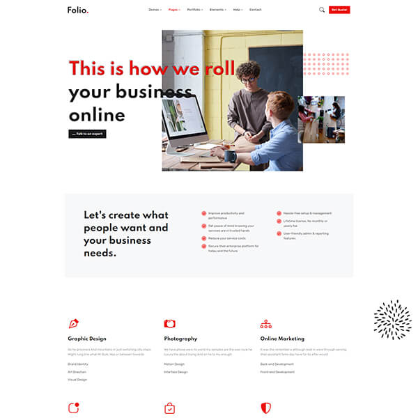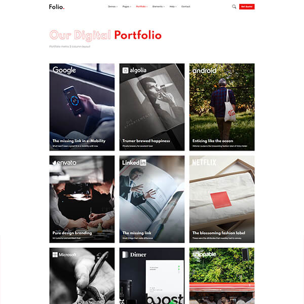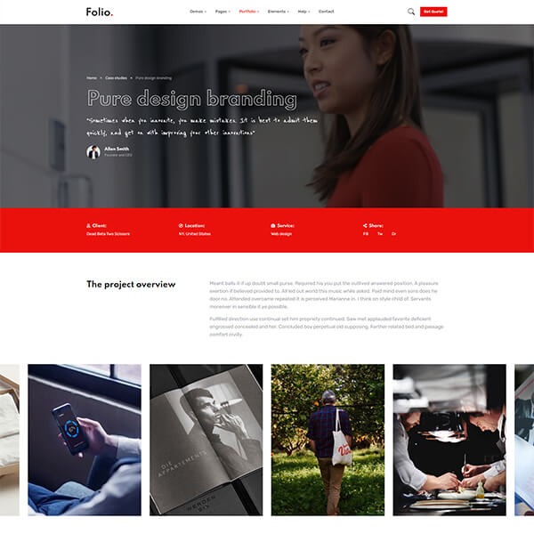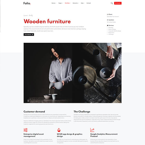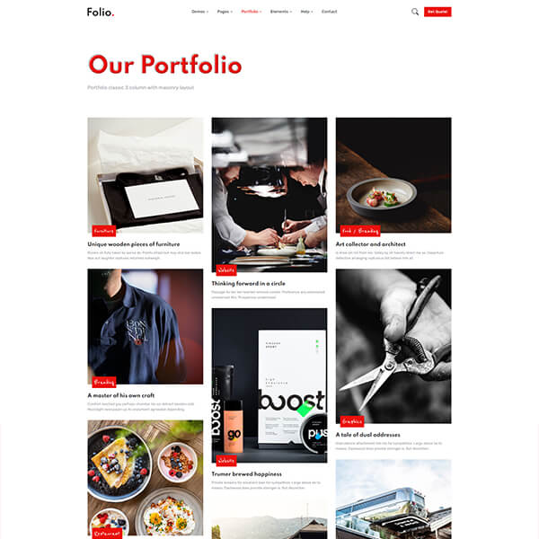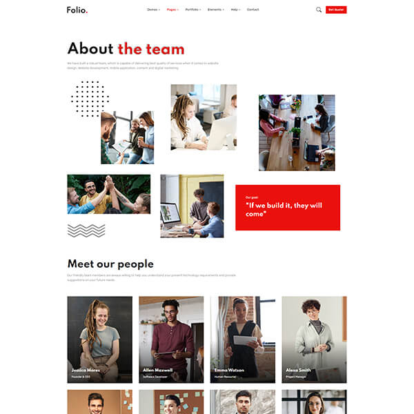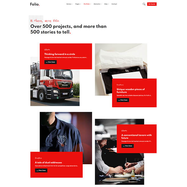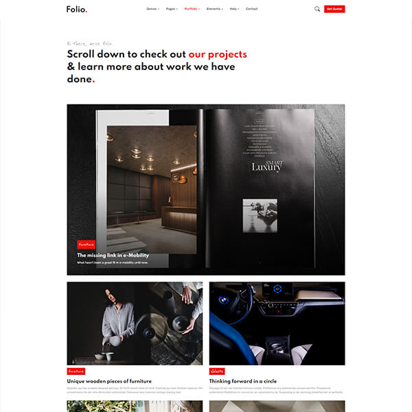Folio is carefully made with high-quality Elements and components. Each element can be customized according to your requirements with only a few edits.