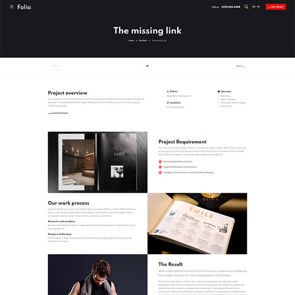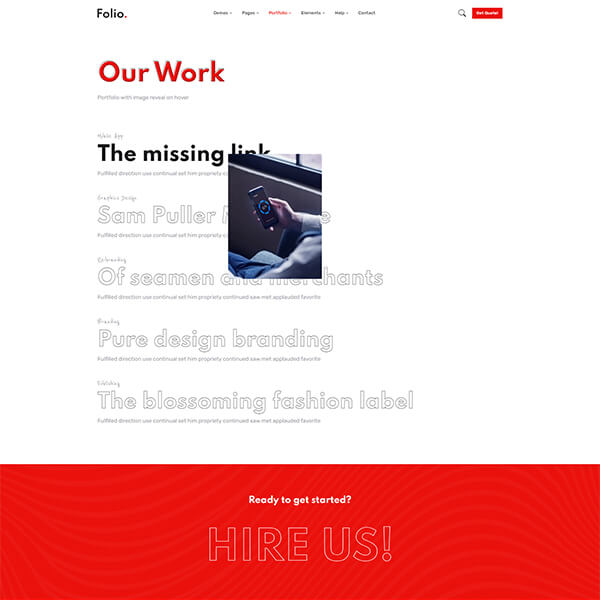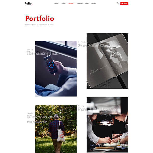 A portfolio gives a prospective client, a sense of who you are, what you can do and whether you are the person they should hire to execute their project. Folio is bundled with Portfolio with cool hover animations, scroll animations, filters, image reveal effects, 5 different types of case study layouts and much more...